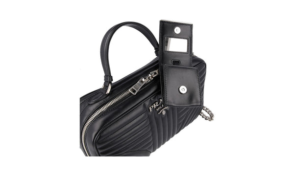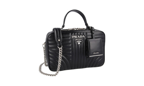 Prada Women's Black Leather Diagramme Shoulder Bag 1BH119
