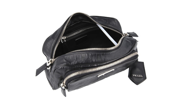 Prada Women's Black Leather Ribbon Shoulder Bag 1BD067