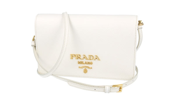 Prada Women's White Saffiano Leather Shoulder Bag 1BP019