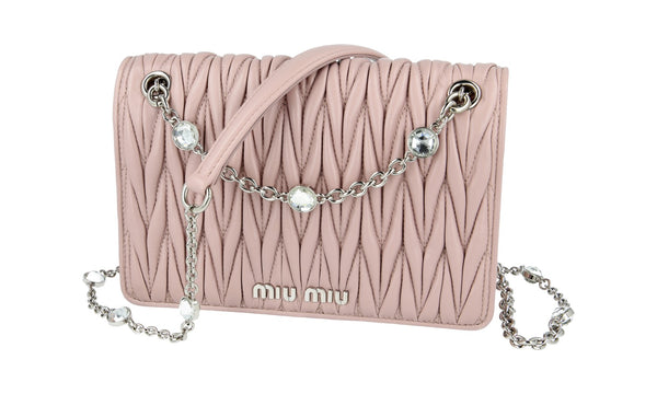 Miu Miu Women's Beige Leather Matelasse Crystal Shoulder Bag 1BP065