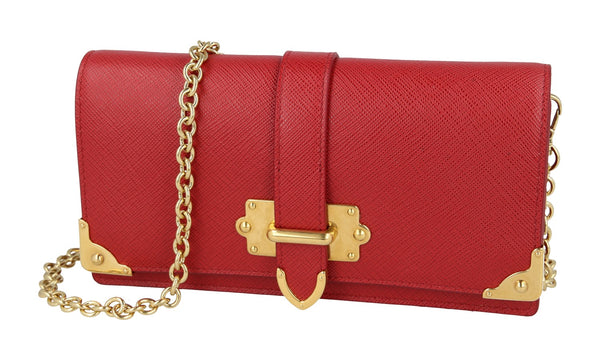 Prada Women's Red Saffiano Leather Cahier Shoulder Bag 1DH044