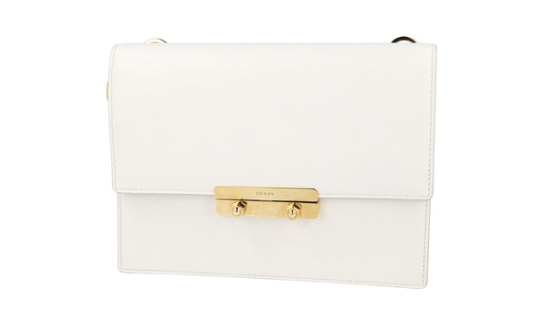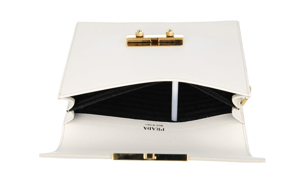 Prada Women's White Saffiano Leather Shoulder Bag 1DH101