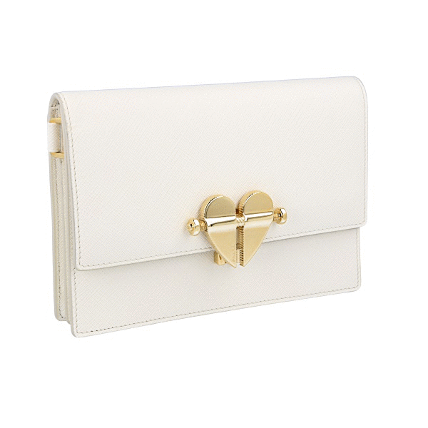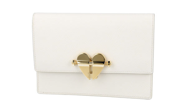 Prada Women's White Saffiano Leather Heart Shoulder Bag 1DH101