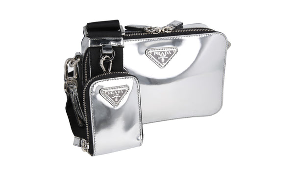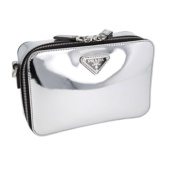 Prada Women's Silver Brushed Spazzolato Leather Brique Chrome Shoulder Bag 2VH070