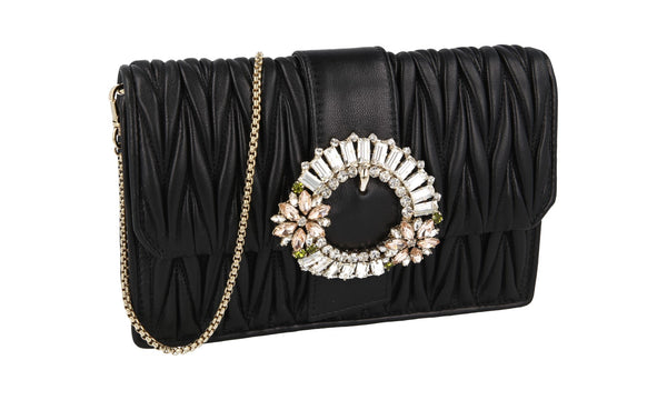 Prada Women's Black Leather Jewels Ribbon Shoulder Bag 1BD067