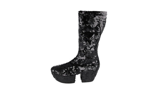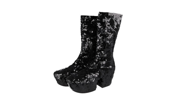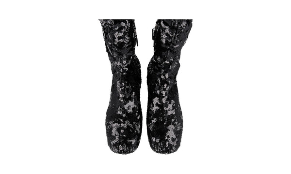 Prada Women's Black Leather Sequin Pailettes Platform Boots 1WP138