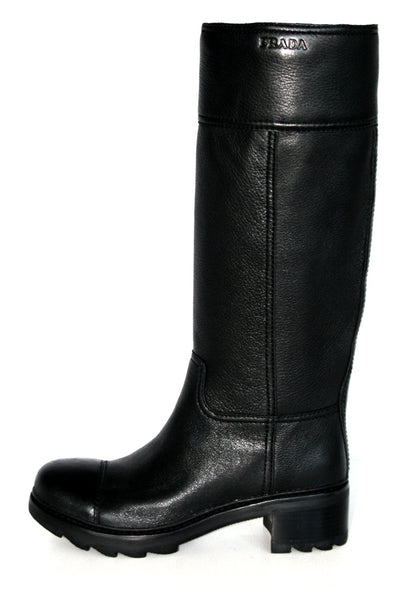 Prada Women's Black Leather Shearling Fur Boots 1U635N