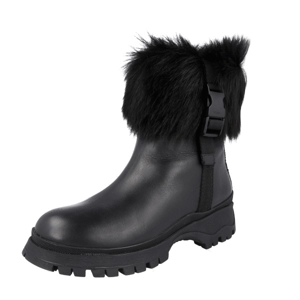 Prada Women's Black Leather Brixxen Shearling Half-Boot 1T496M