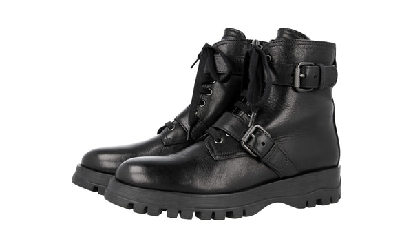 Prada Women's Black Leather Brixxen Shearling Half-Boot 1T496M