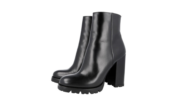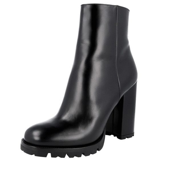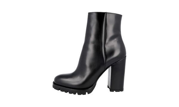 Prada Women's Black Leather Brixxen Shearling Half-Boot 1T496M