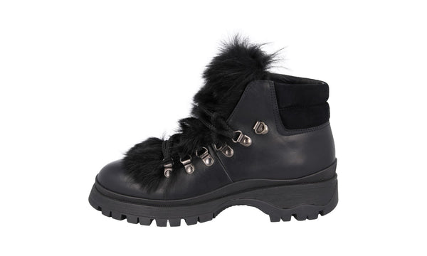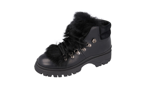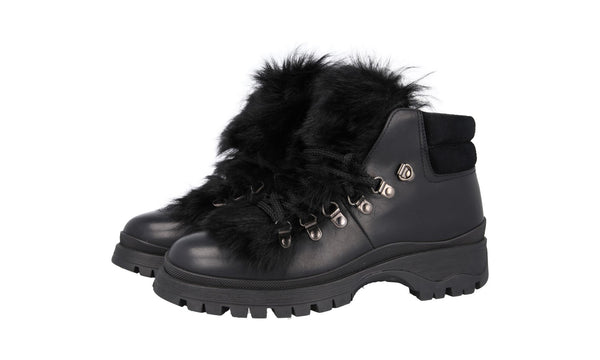 Prada Women's Black Leather Brixxen Shearling Half-Boot 1T496M