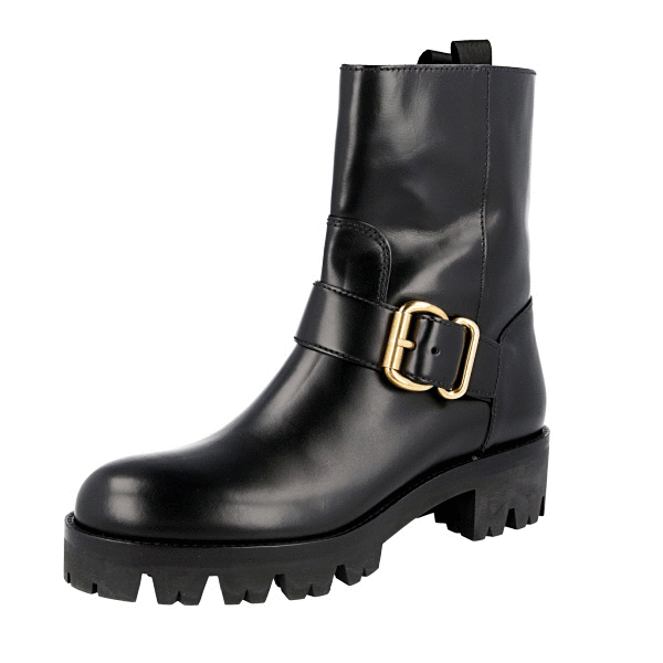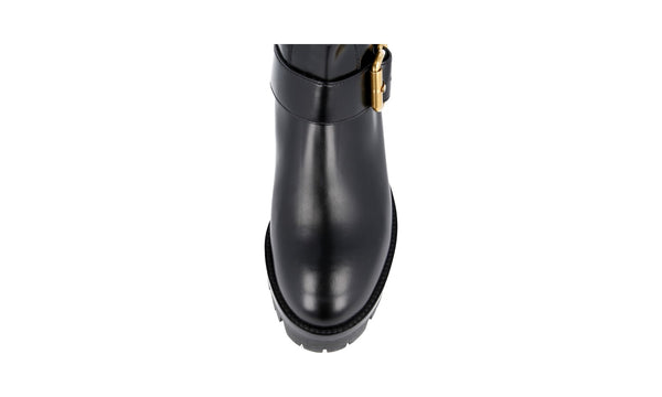 Prada Women's Black Leather Brixxen Shearling Half-Boot 1T496M