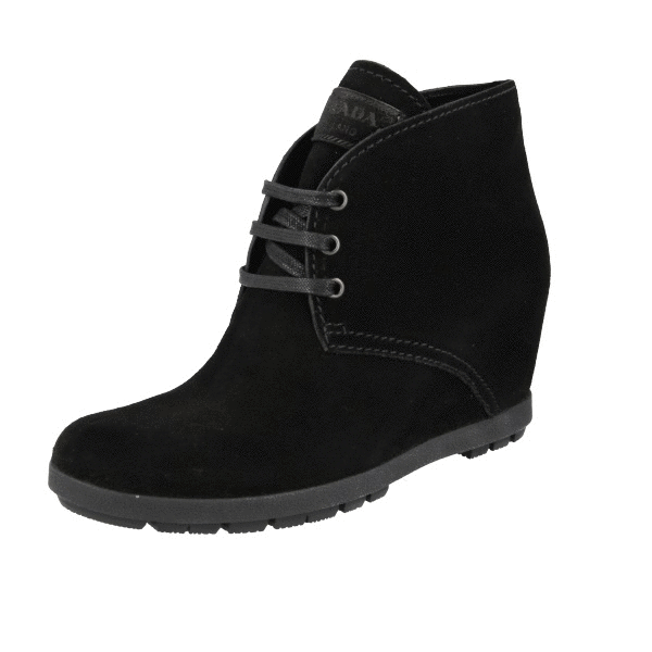 Prada Women's Black Leather Brixxen Shearling Half-Boot 1T496M