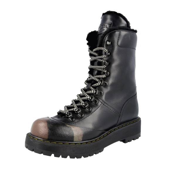 Prada Women's Black welt-sewn Leather Shearling Fur Half-Boot 3U5921