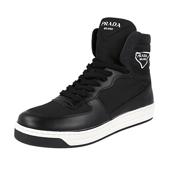 Prada Women's Black Leather High-Top Sneaker 3TZ043