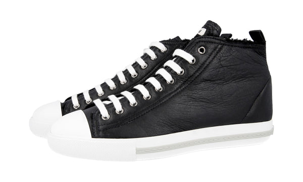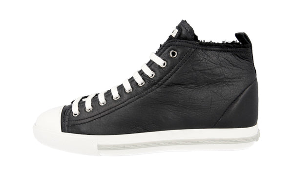 Prada Women's Black Leather High-Top Sneaker 3TZ043