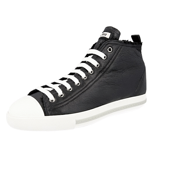 Miu Miu Women's Black Leather Shearling Fur Schaf Fell High-Top Sneaker 5T424B
