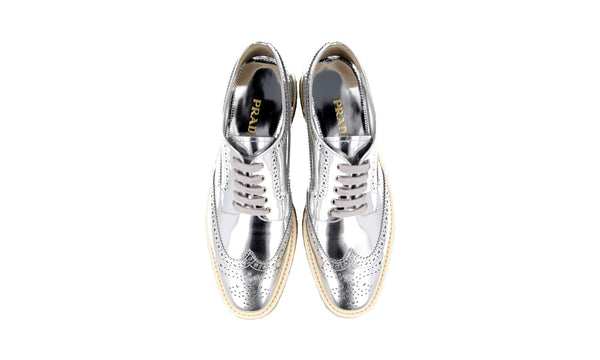 Prada Women's Silver welt-sewn Leather Derby Lace-up Shoes 1E722E