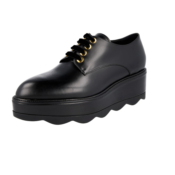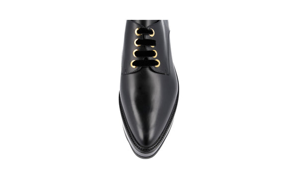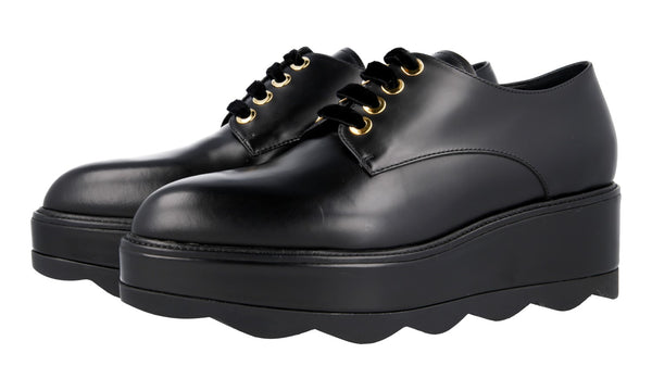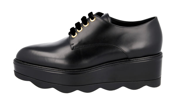 Prada Women's Black welt-sewn Leather Platform Derby Dress Lace-up Shoes 1E851H