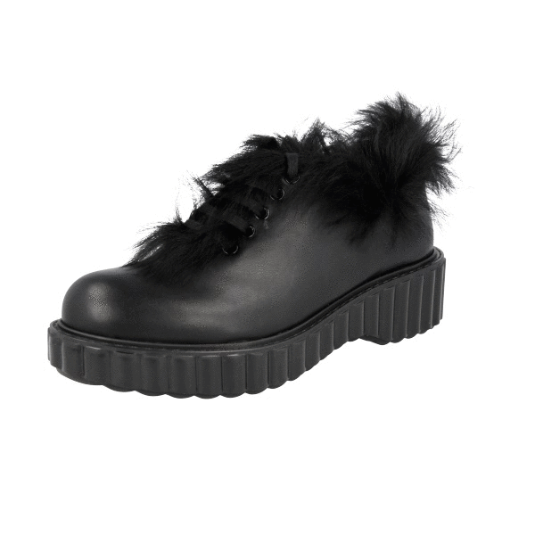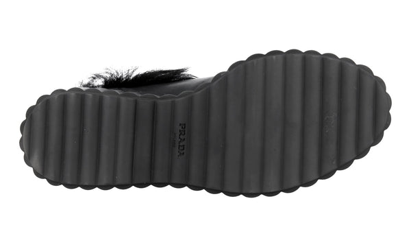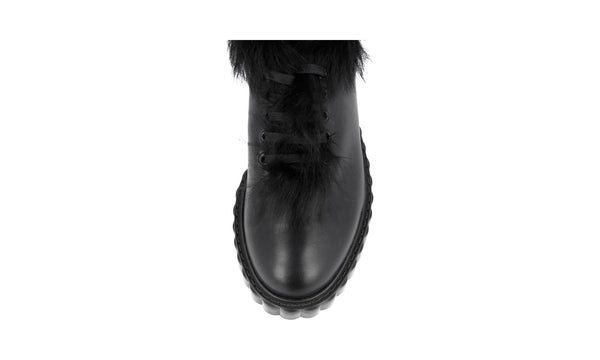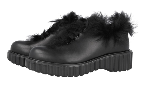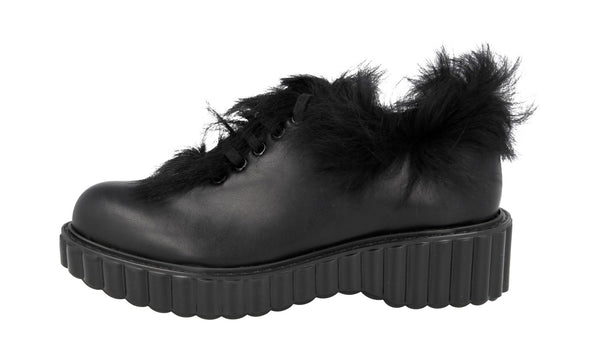 Prada Women's Black welt-sewn Leather Shearling Fur Lace-up Shoes 1E867H