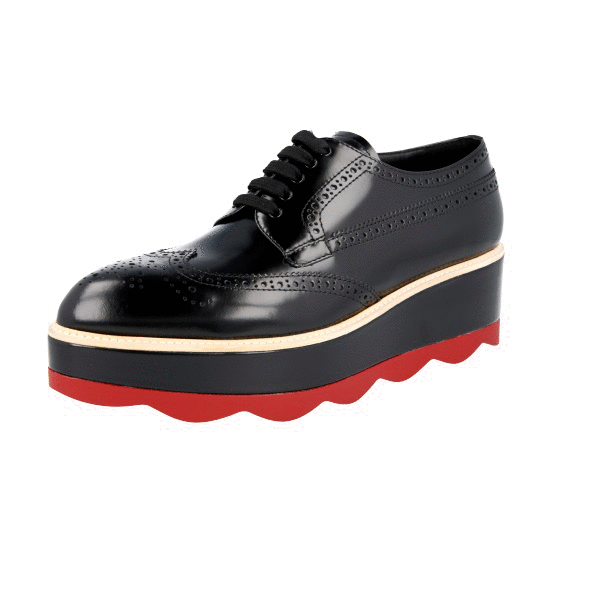 Prada Women's Black Leather Chocolate Monolith Lace-up Shoes 1E255N