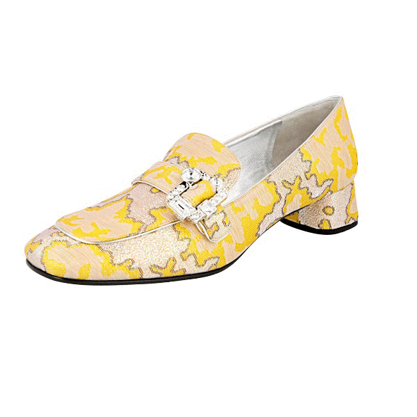 Prada Women's Yellow Jacquard Lurex Crystal Brooch Glamour Pumps / Heels 1D450I