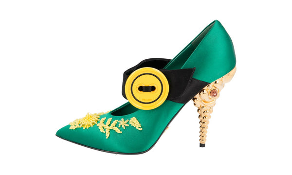 Prada Women's Green Leather Runway Crystal Pearl Embroided Pumps / Heels 1I011I
