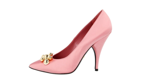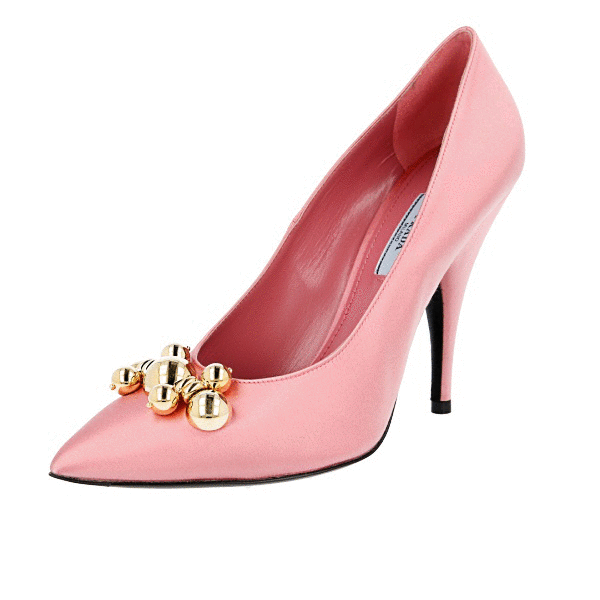 Prada Women's Pink Leather Gold Spheres Brooch Pumps / Heels 1I049I