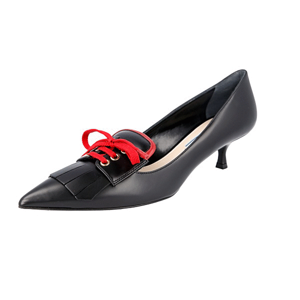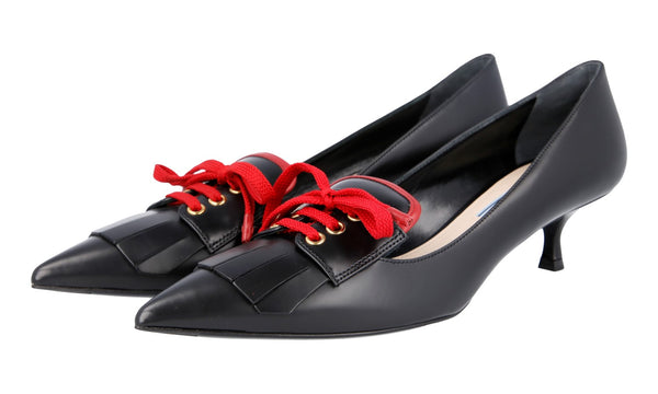 Prada Women's Black Brushed Spazzolato Leather Lace-up Pumps / Heels 1I135H