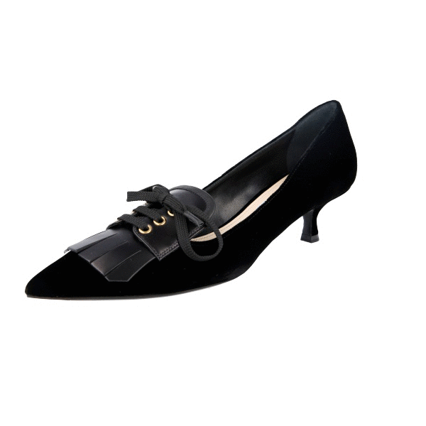 Prada Women's Black Leather Lace-up Fringes Pumps / Heels 1I135H