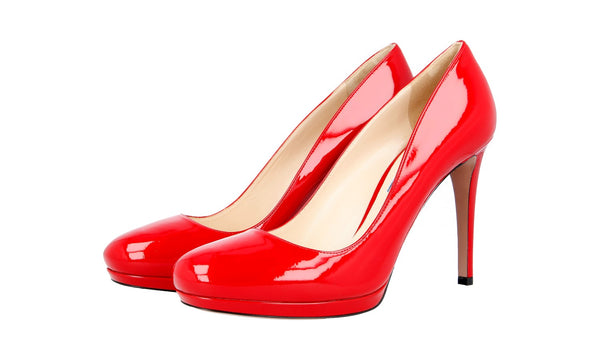 Prada Women's Red Leather Platform High Heels Stilettos Pumps / Heels 1IP286