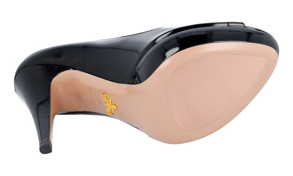 Prada Women's Black Leather Platform Peep Toe High Heels Pumps / Heels 1KP130