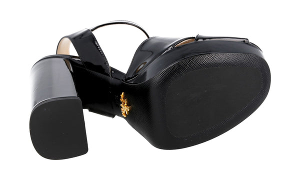 Prada Women's Black Leather Platform Peep Toe High Heels Pumps / Heels 1KP130