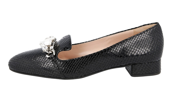 Prada Women's Black Leather Platform Peep Toe High Heels Pumps / Heels 1KP130