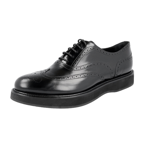 Prada Women's Black Leather Plateau Derby Full Brogue Business Shoes 1E722E