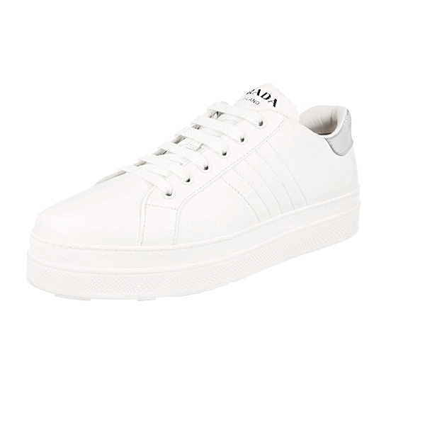 Prada Women's White Leather Macro Sneaker 1E536L