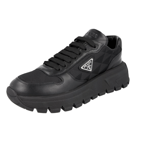 Prada Women's Black Leather Prax01 Symbole Platform Sneaker 1E620N