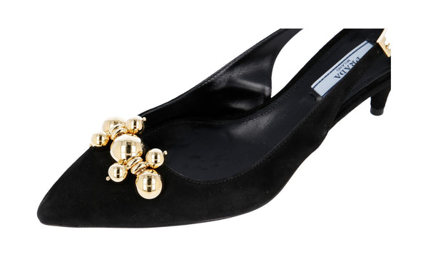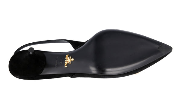Prada Women's Black Leather Sling-back Sandals Pumps / Heels 1I166I