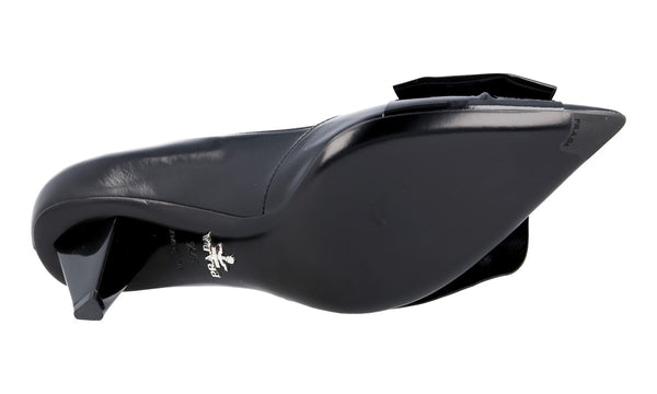 Prada Women's Black Brushed Spazzolato Leather Pumps / Heels 1I462H