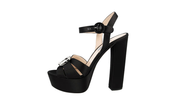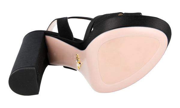 Prada Women's Black Leather Crystal Platform High Heels Sandals 1XP02A