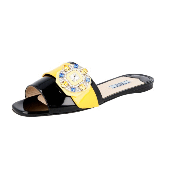 Prada Women's Multicoloured Leather Crystal Brooch Sandals 1XX366