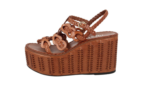Prada Women's Brown Leather Plateau Sandals 1XZ737