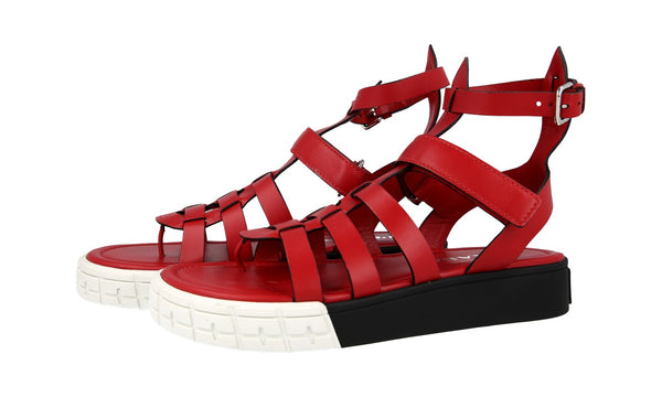 Prada Women's Red Leather Casetta Wheel Sandals 1Y931L