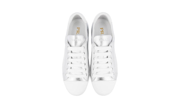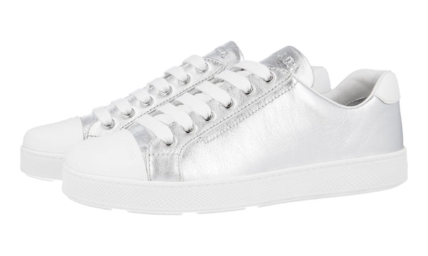 Prada Women's Silver Leather Downtown Cap Toe Sneaker 1E663I