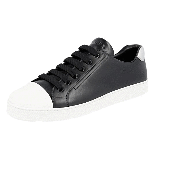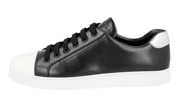 Prada Women's Black Leather Downtown Cap Toe Sneaker 1E663I