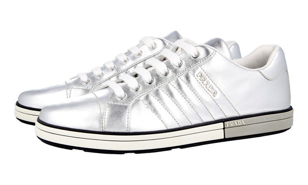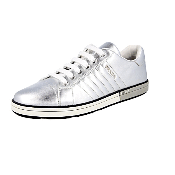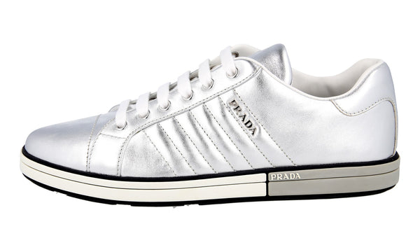 Prada Women's Silver Leather Diagramme Sneaker 1E886L