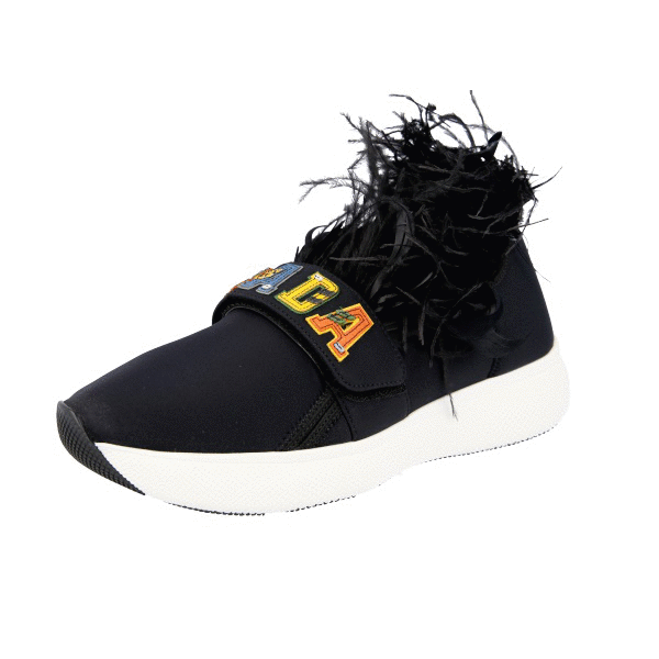 Prada Women's Black Neoprene Feathers Slip-on Sneaker 1S113I
