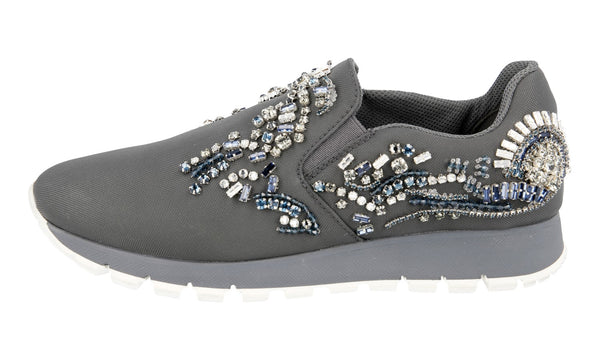 Prada Women's Grey Crystal Prax01 Slip-on Sneaker 1S875F