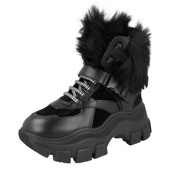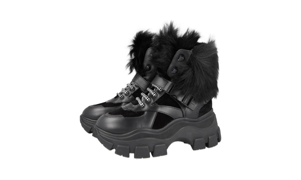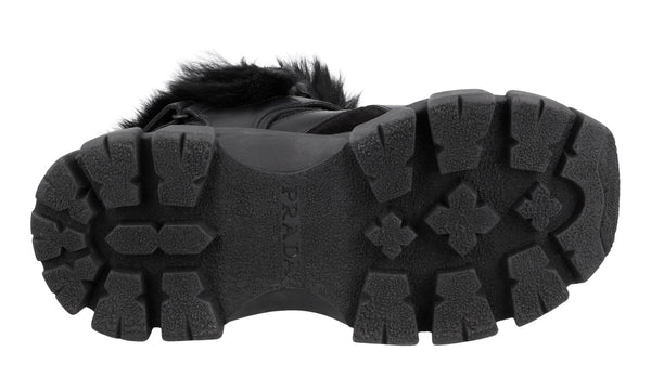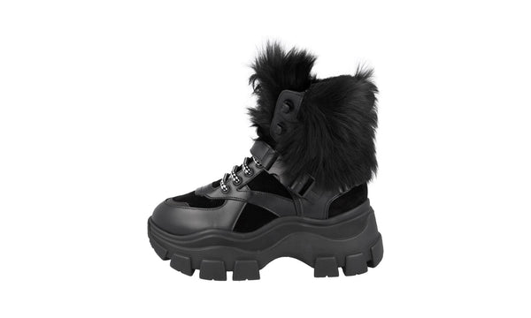 Prada Women's Black Leather Monolith Shearling Fur Block Booties Sneaker 1T611L