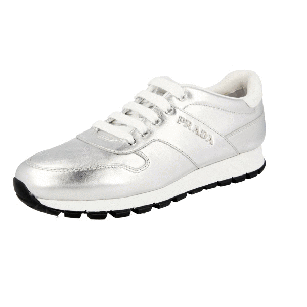 Prada Women's Silver Leather Matchrace Sneaker 3E6412